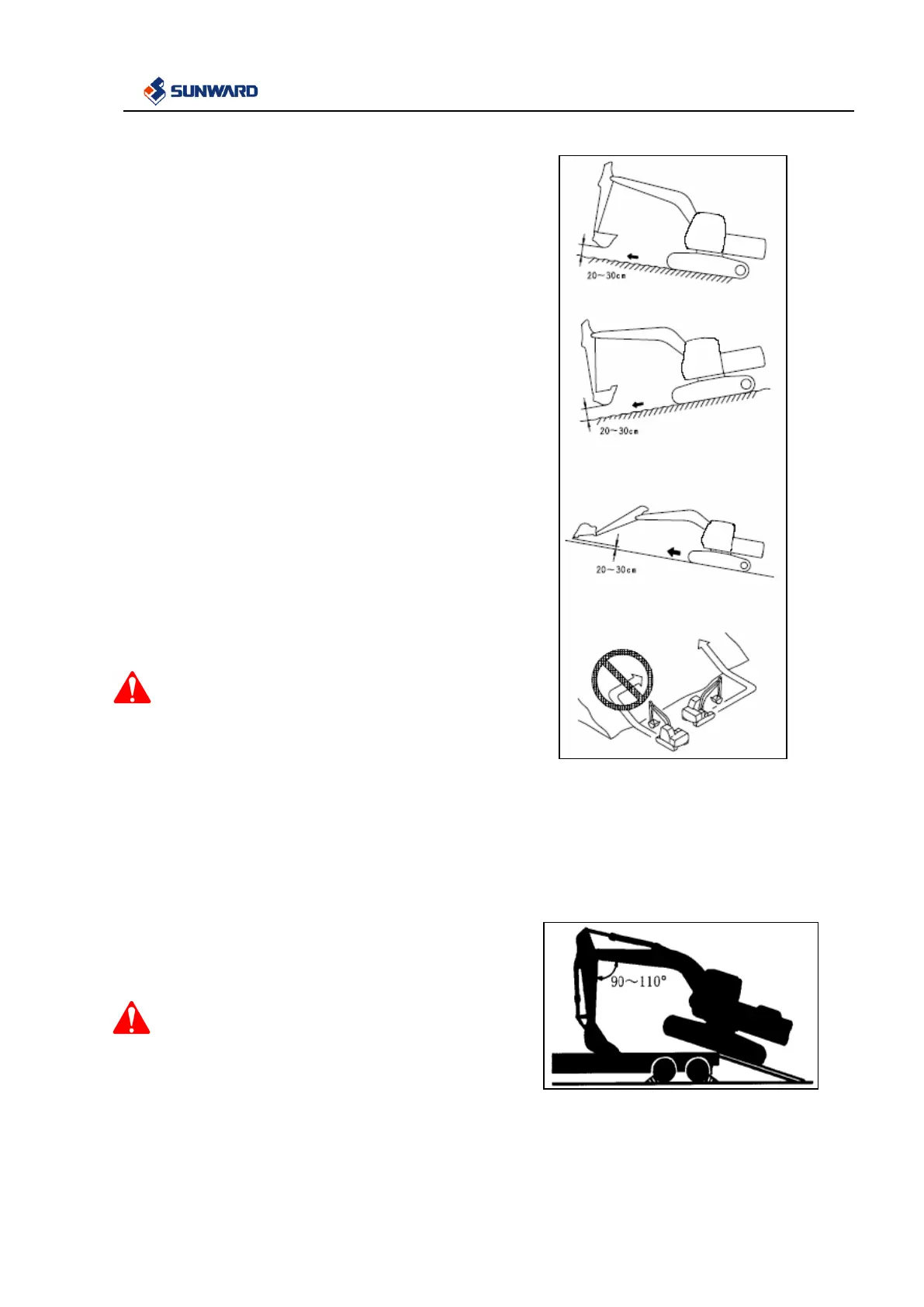 When traveling on slopes, operate machine straight up