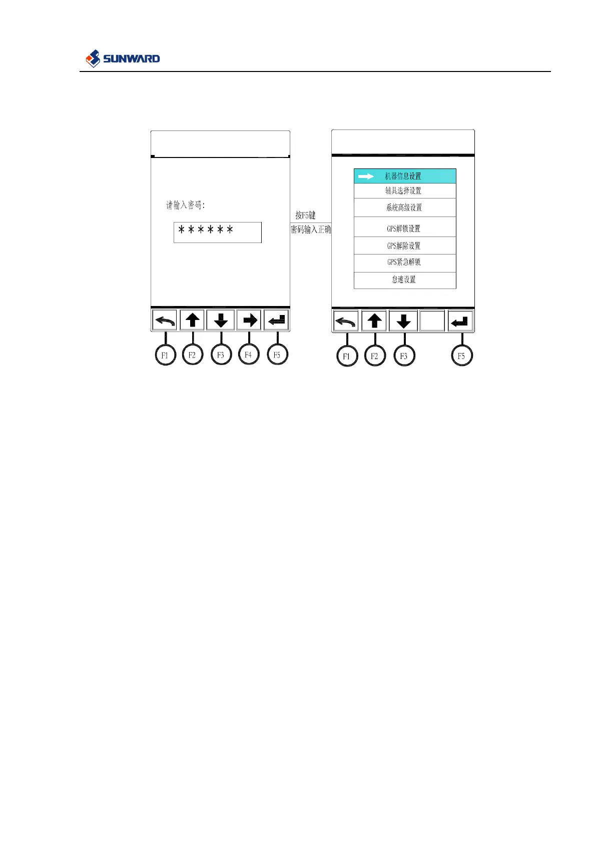 password digit capacity by F4, confirm with F5 after correct password is input to enter the system