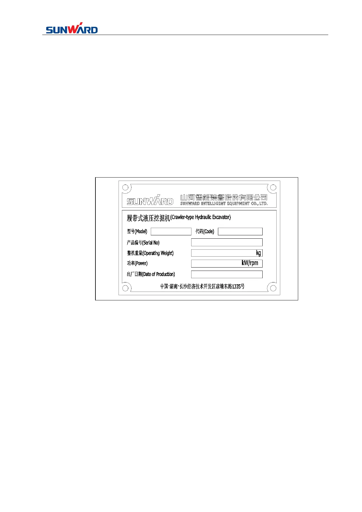 ① A clear and full photo of the equipment nameplate, which locates on the right outside of the cab, as below