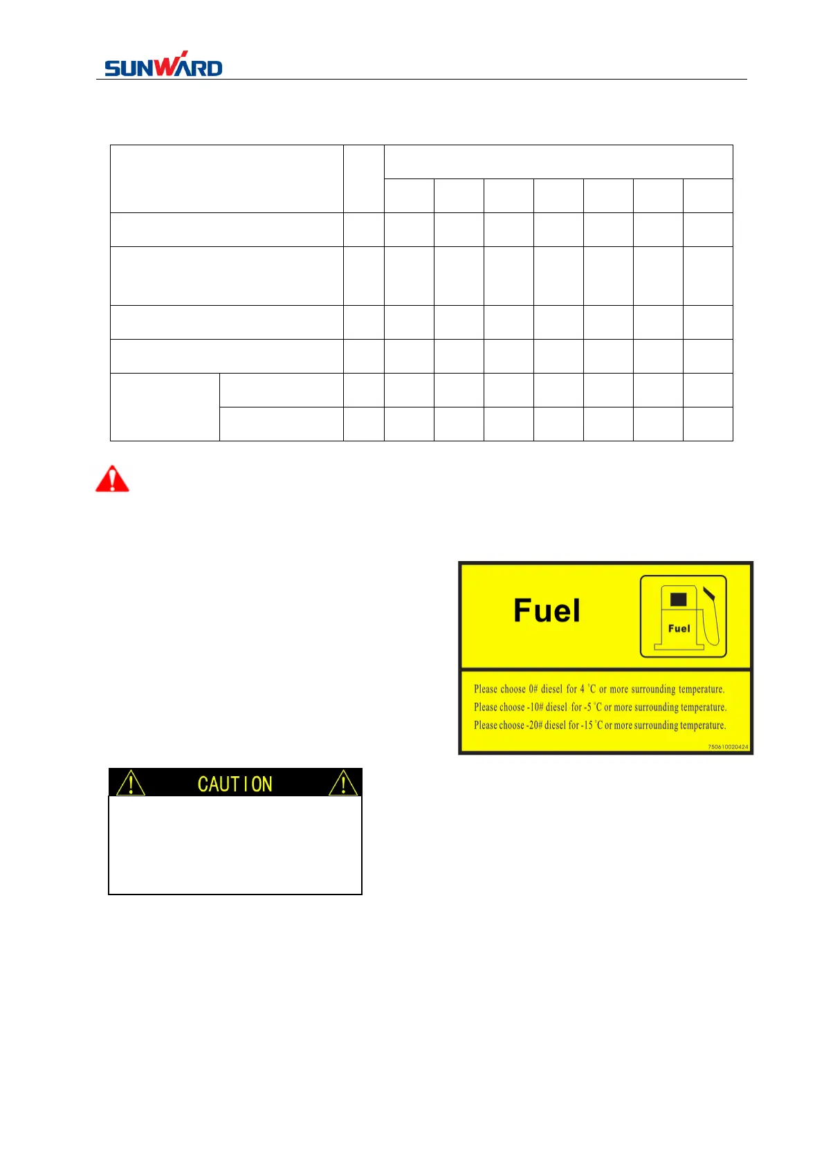 Please use high quality diesel fuel (GB252 0# in normal condition; 10# for the winter) only, do not use