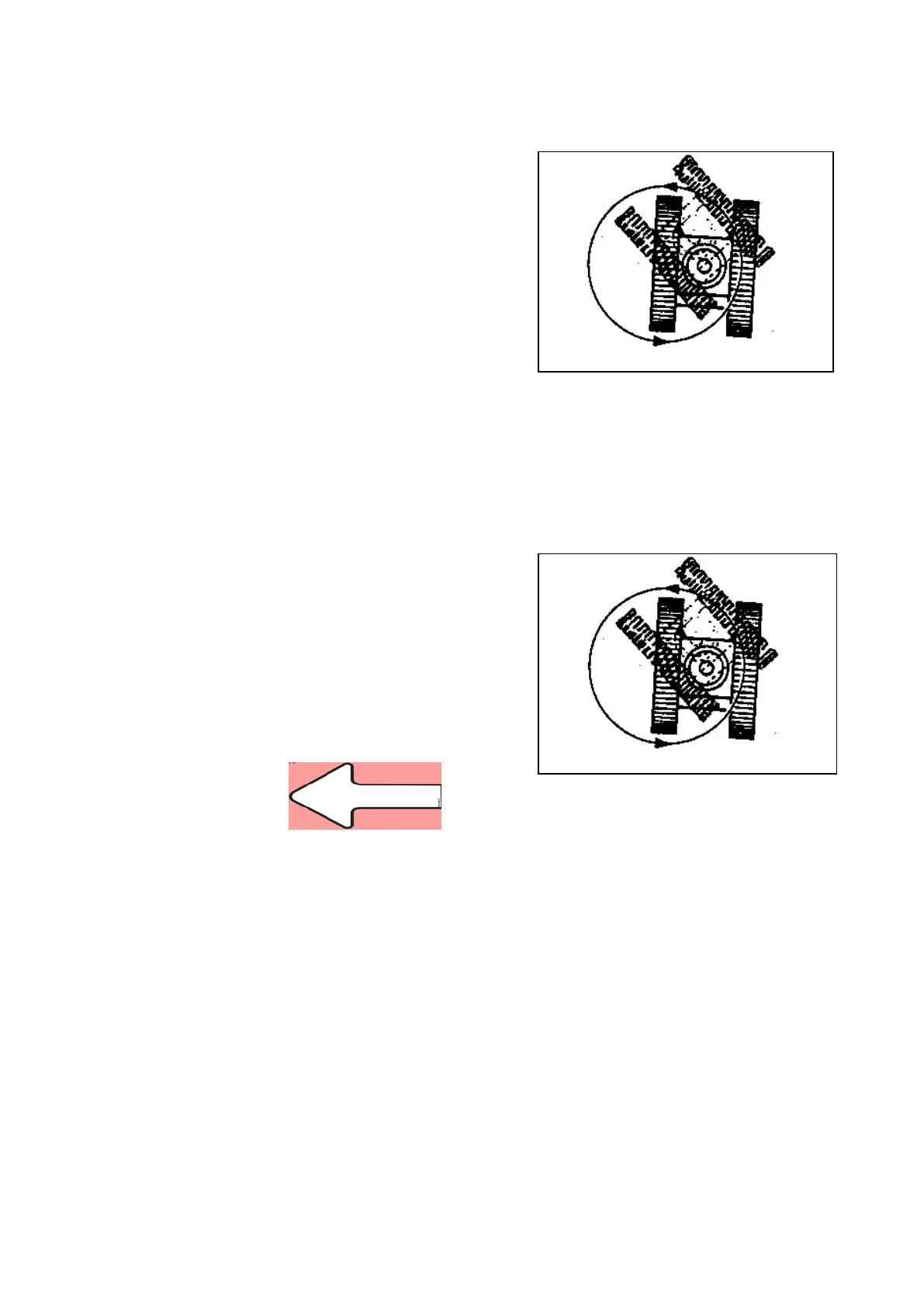 Turn left (FIG. 3-13): Push right handle 2 forward and pull left handle 1 backward.