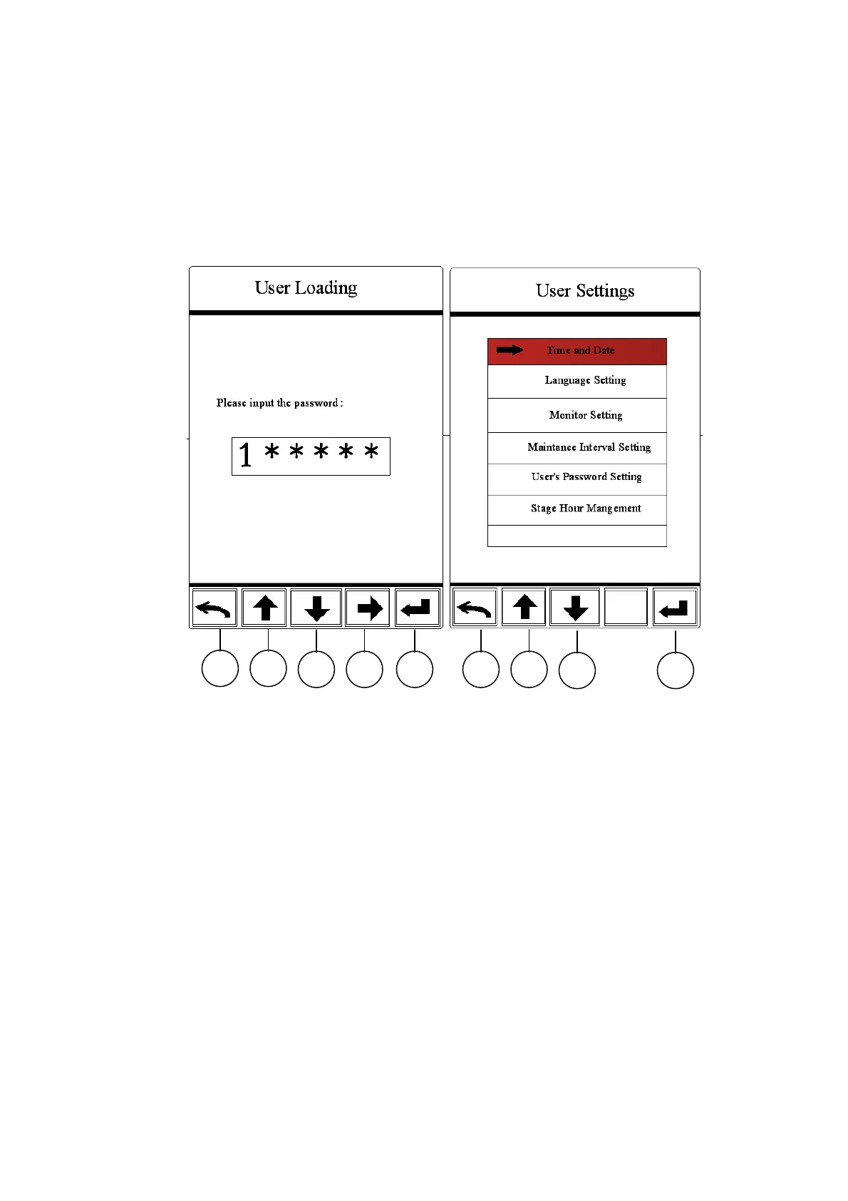 (1) In user setting interface, use F2 and F3 to input password, F4 used for selecting