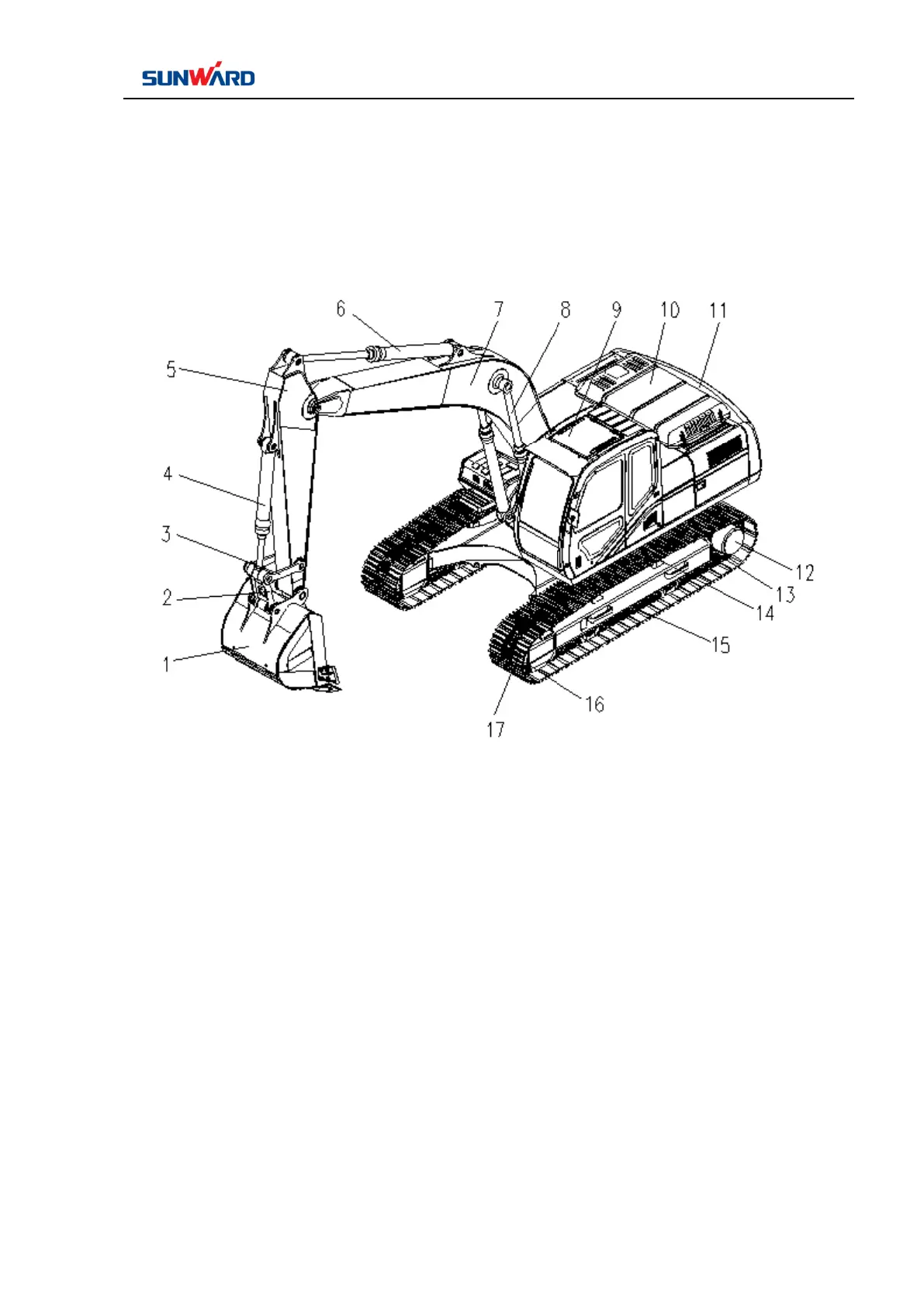 4. Bucket cylinder 5. Arm 6. Arm cylinder