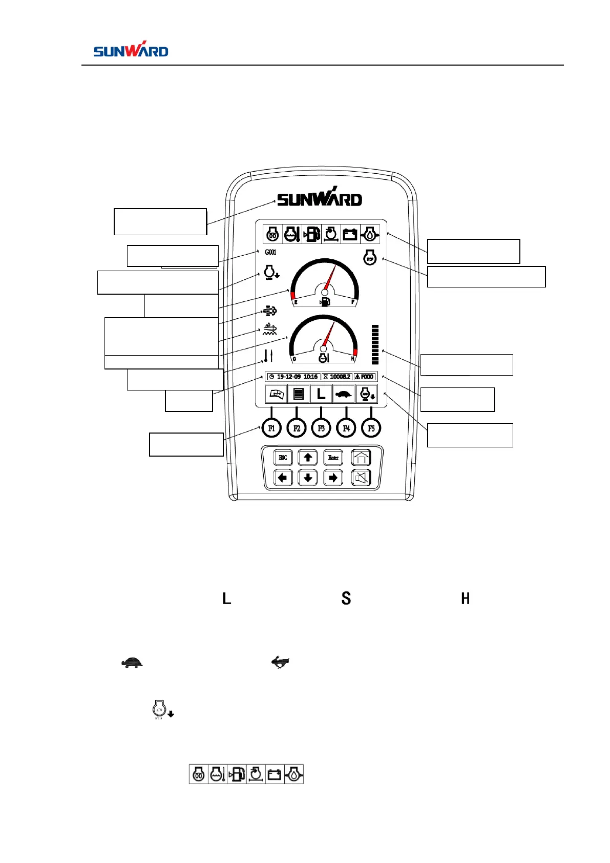 4. Press F4, travel speed is switched between high speed and low speed, icon of low travel speed is