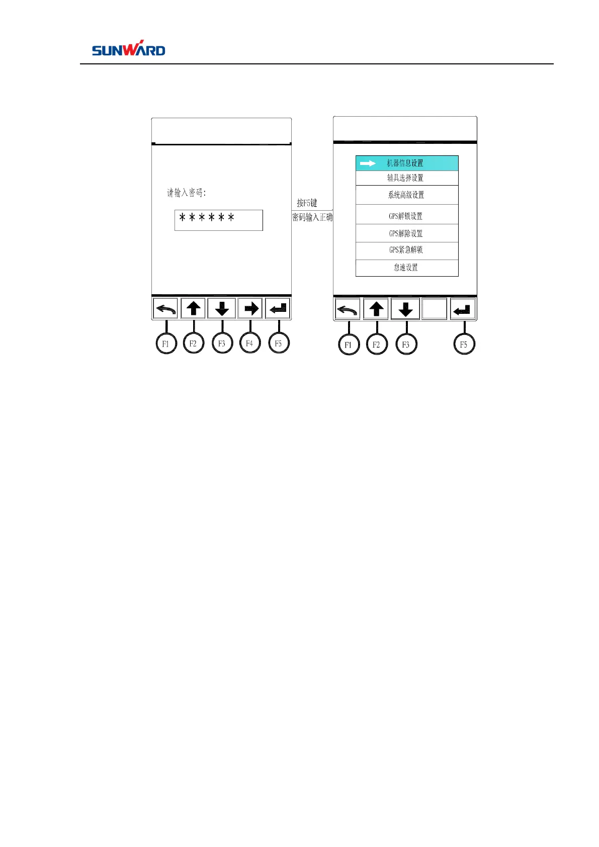 password digit capacity by F4, confirm with F5 after correct password is input to enter the system