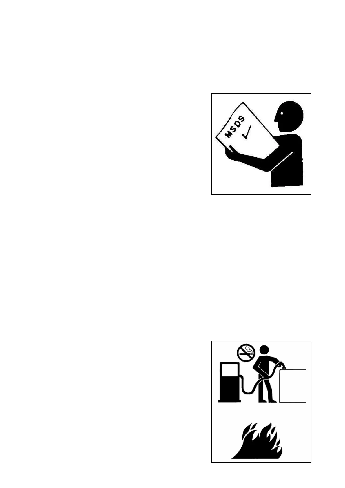 ⚫ Dispose of fuel carefully, stop engine before adding fuel, prohibit smoking while adding fuel