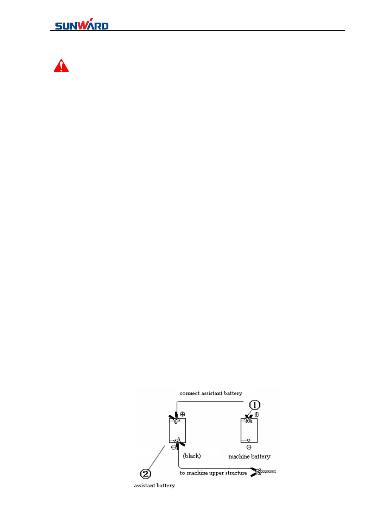 excavator framework, keep as far as away from the battery connection wire end.