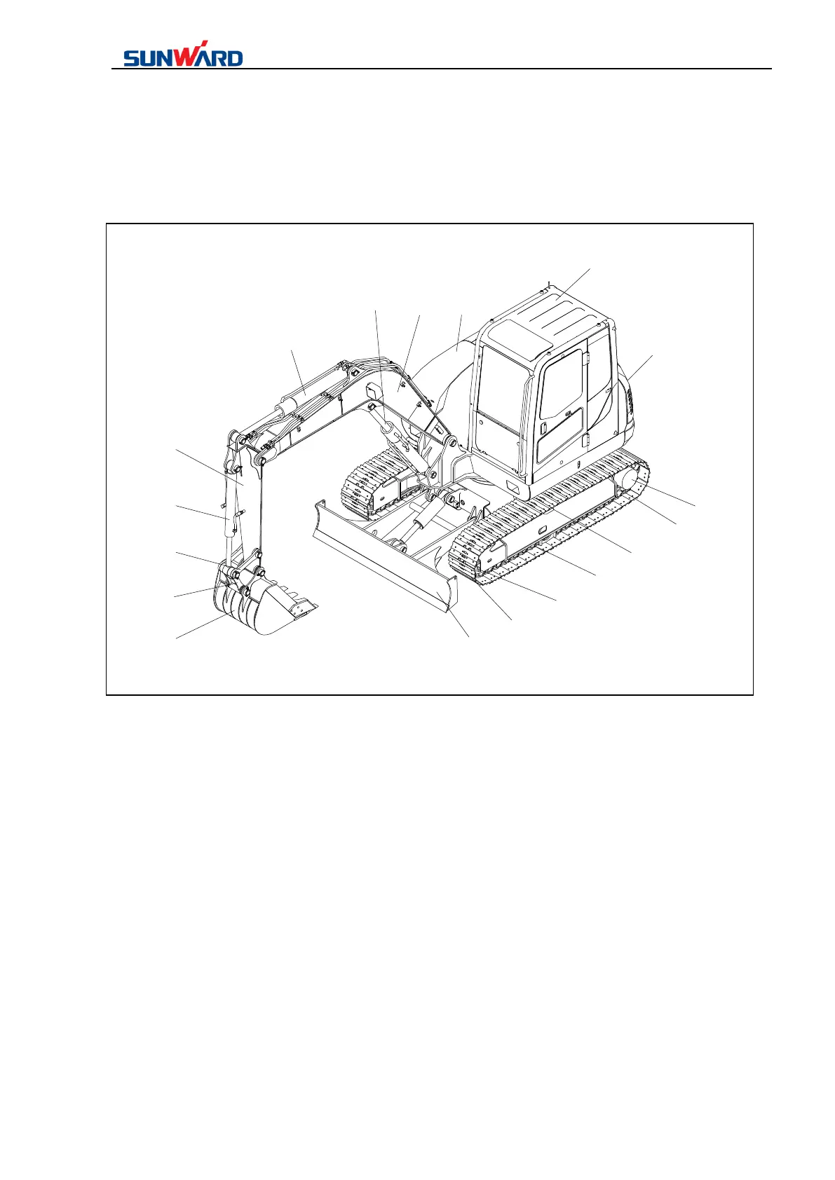 9、engine cover 10、cab 11、counterweight 12、travel motor