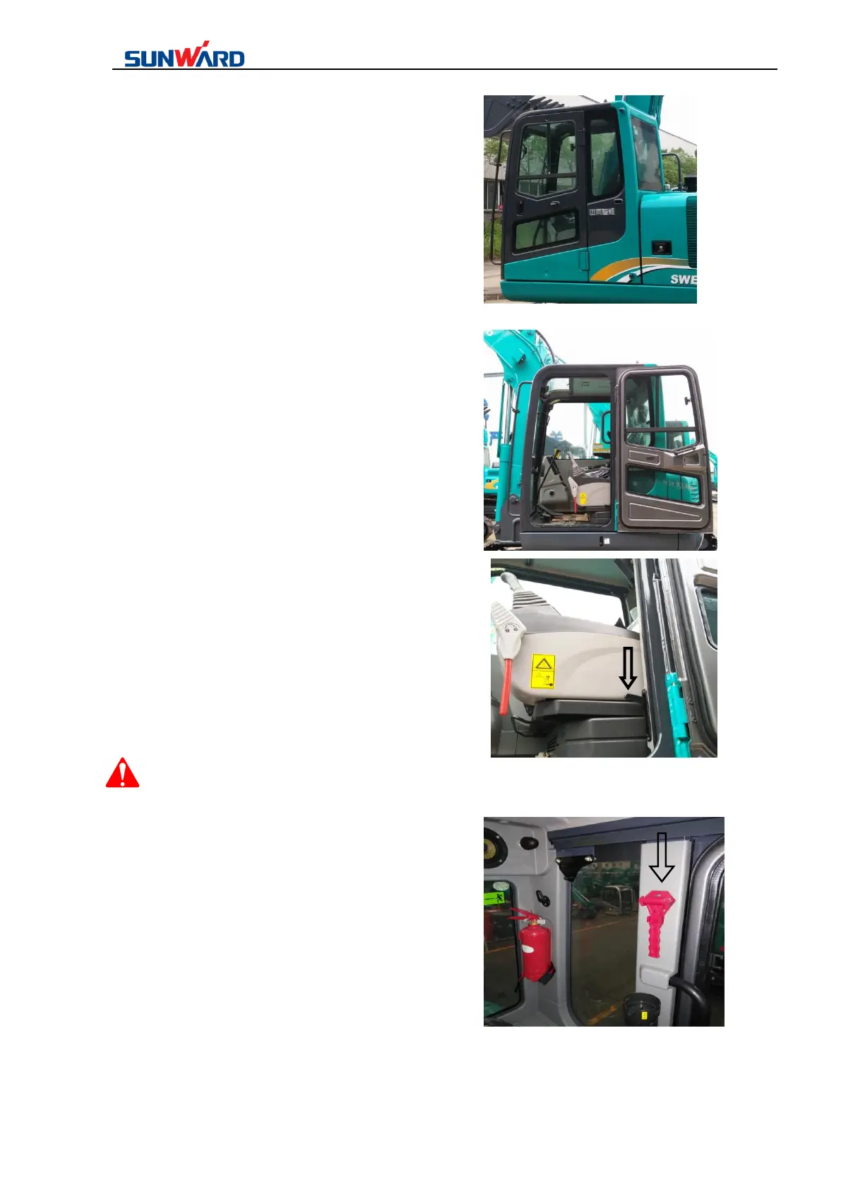 Close the cab door:Press the unlock joystick in