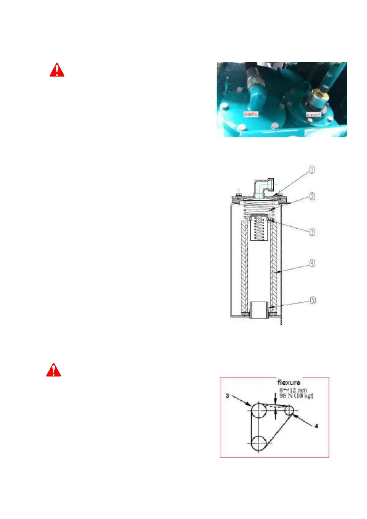 Reinstall filter (4), insert it to the bulge (5) in oil tank.
