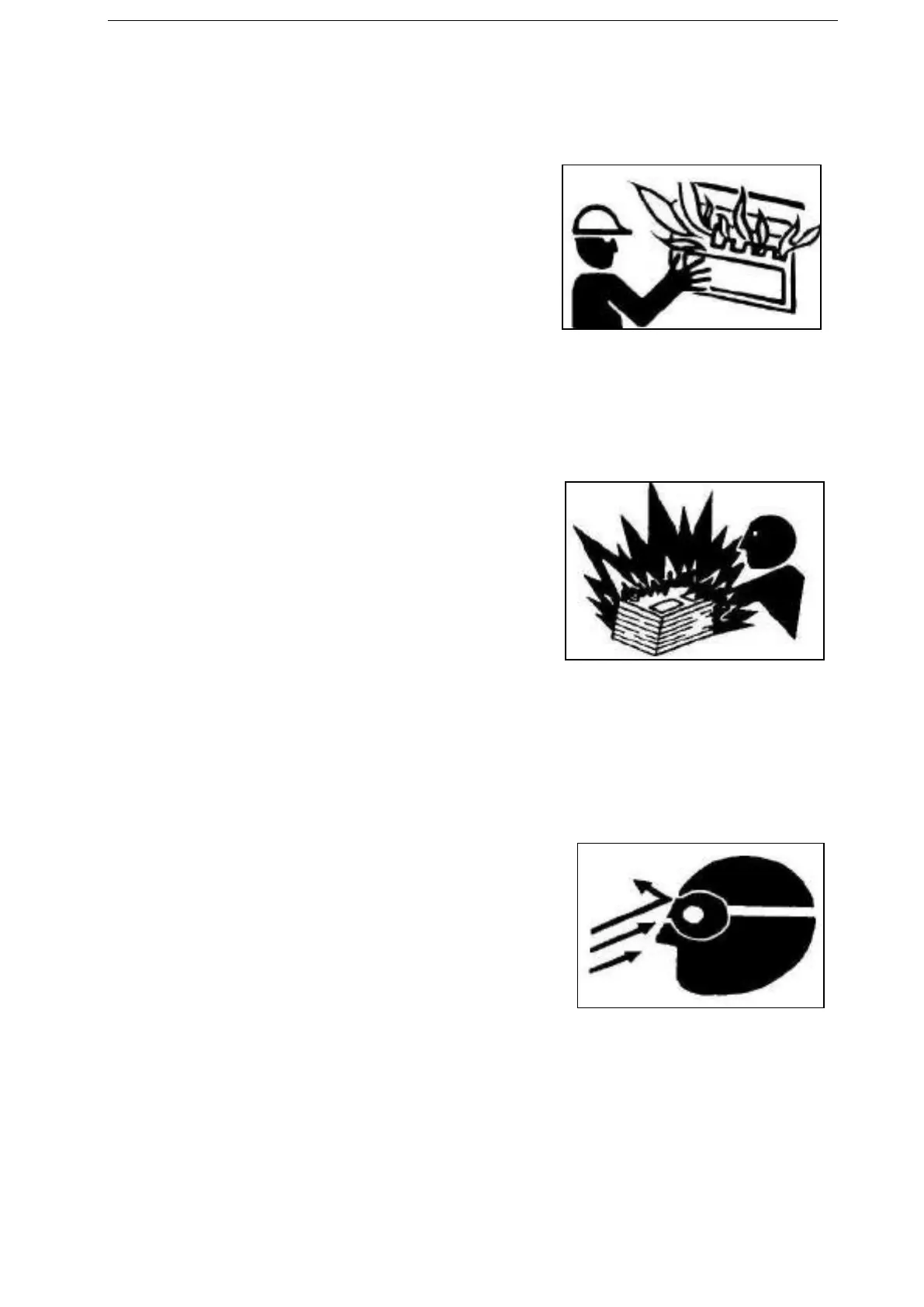 In operation or maintenance, take care of the parts that may fly off, human body and face must avoid the