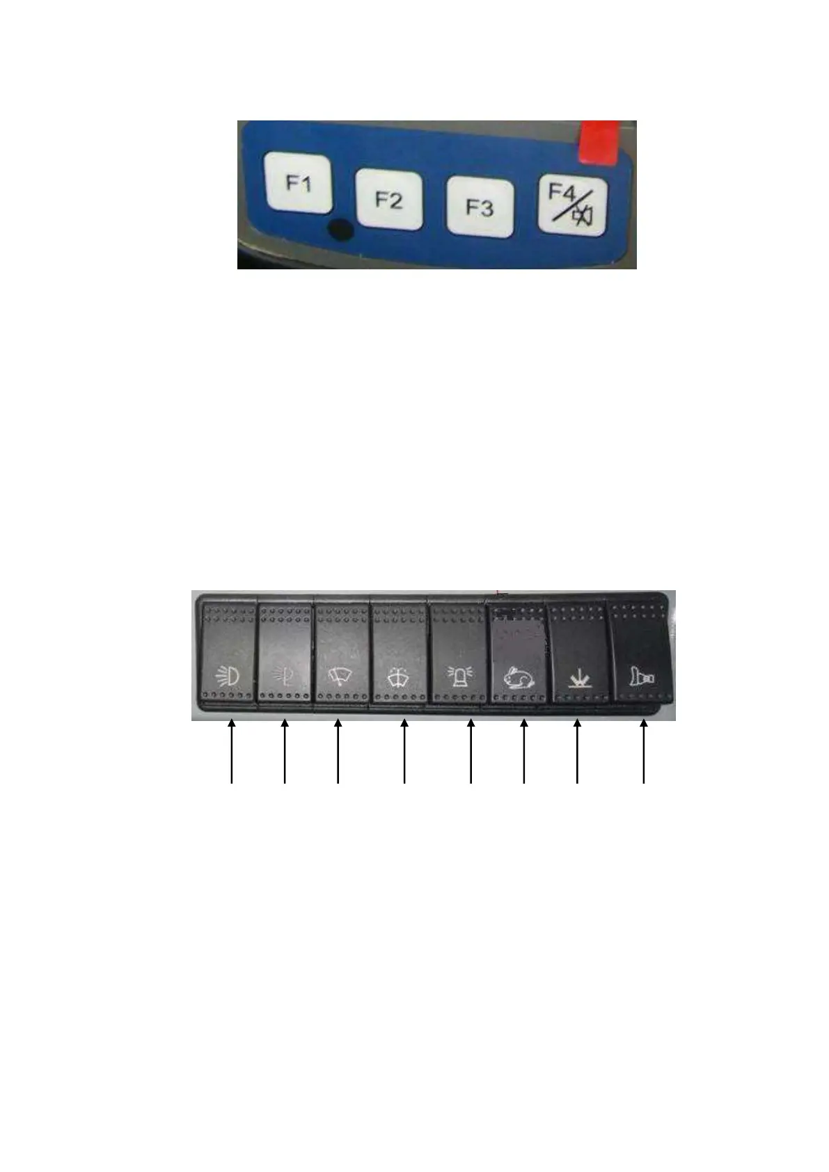 The four buttons of the first line under monitor, their functions will be displayed in monitor, different