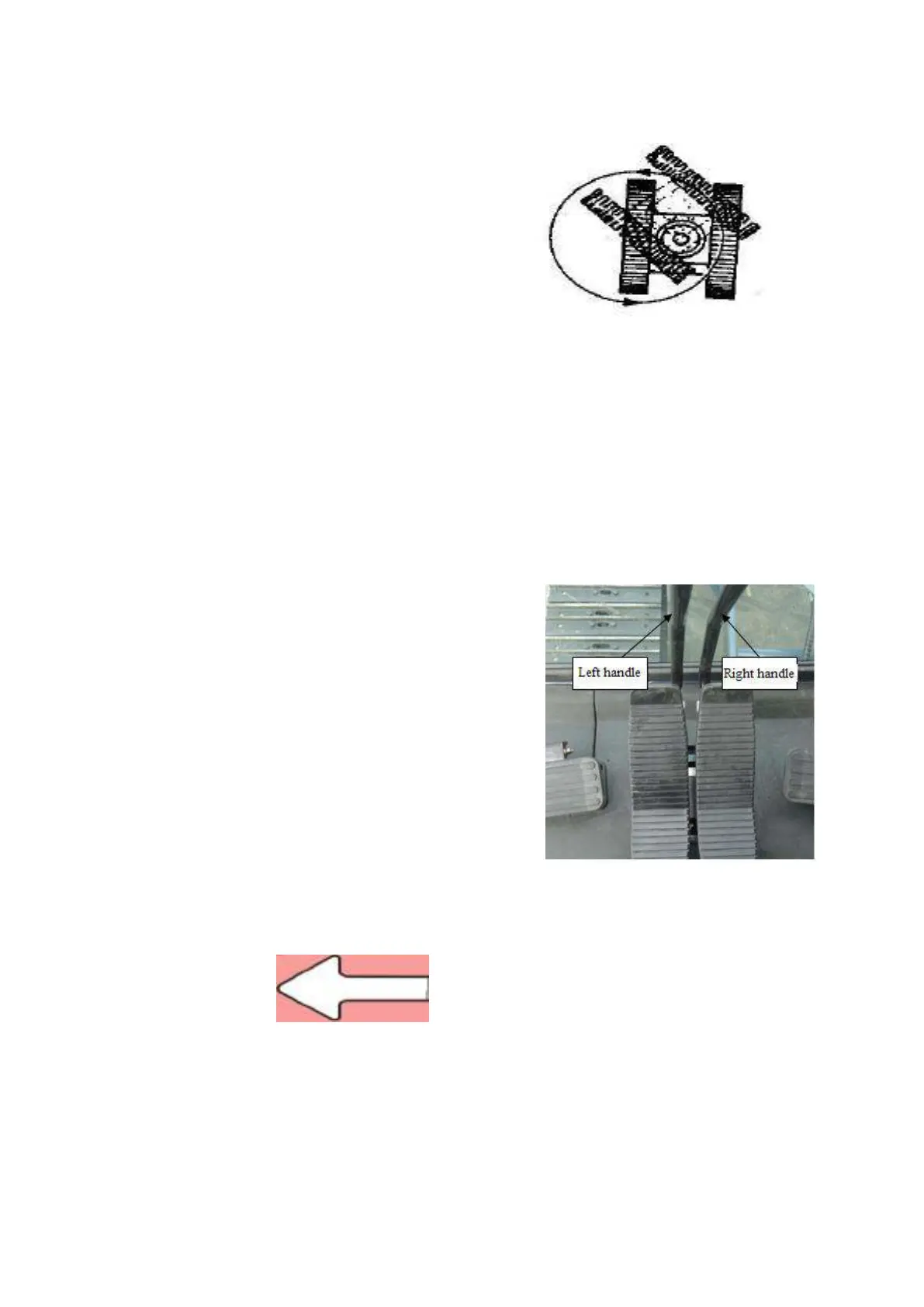 Right turning (figure 3.4.3): Pull right handle backward and push