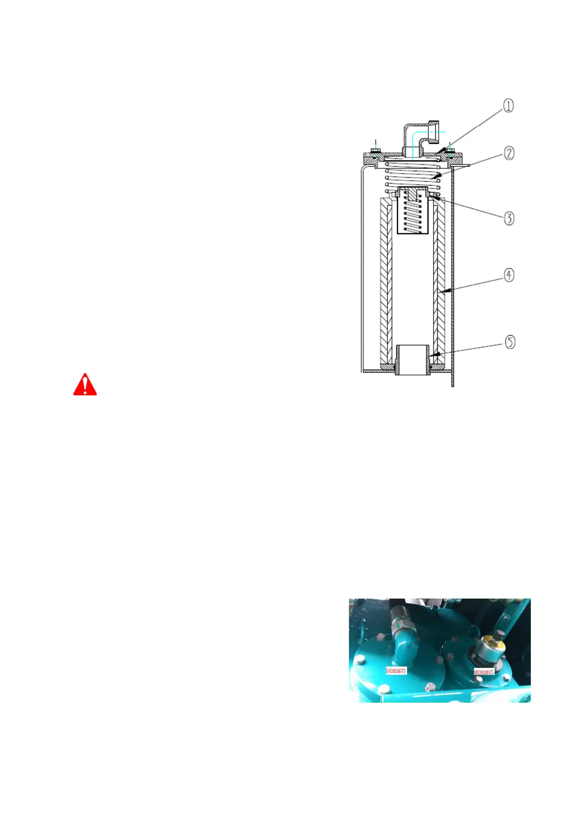 Reinstall filter (4), insert it to the bulge (5) in oil tank.