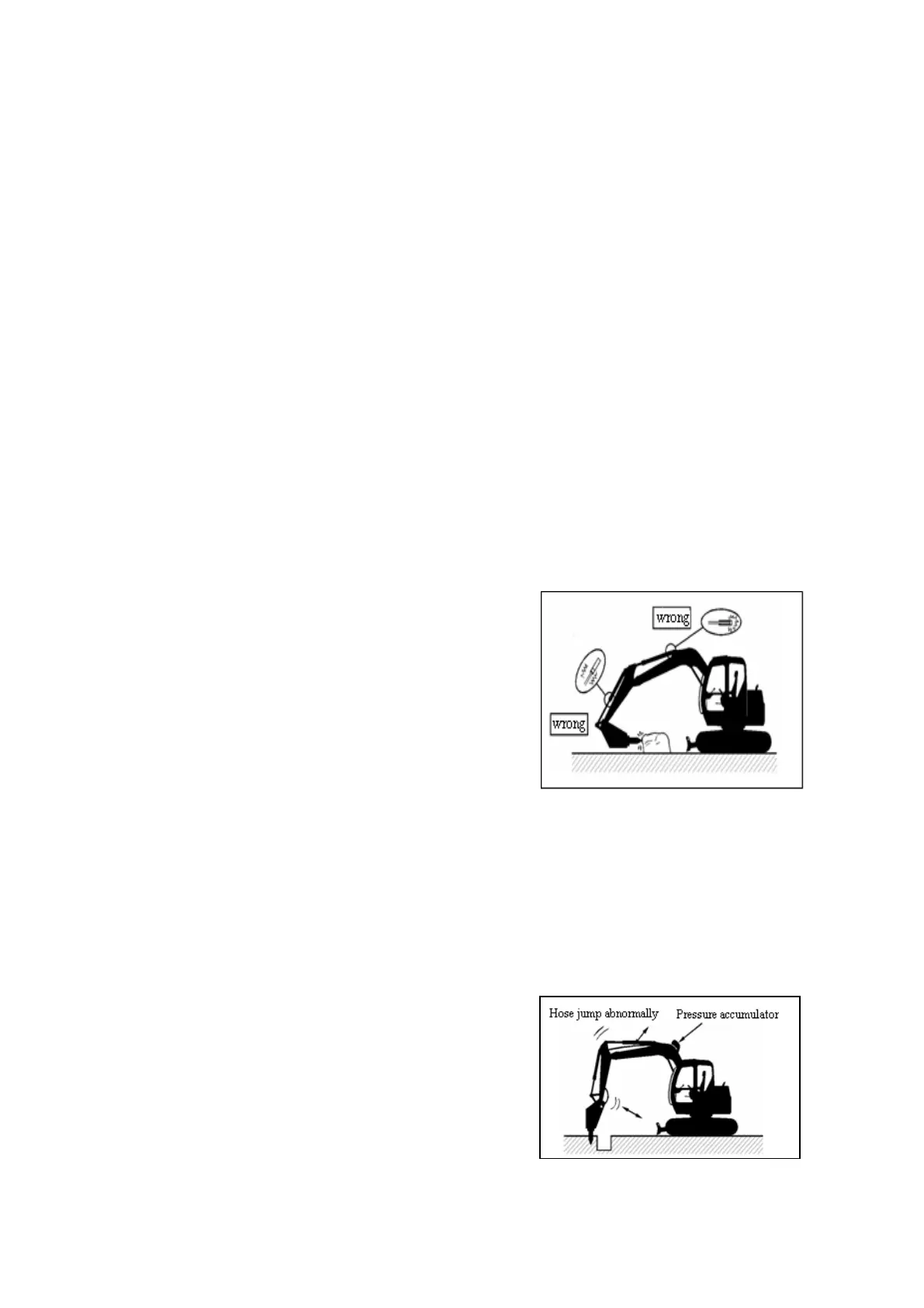 (6) If hydraulic breaker hose jumps abnormally, stop