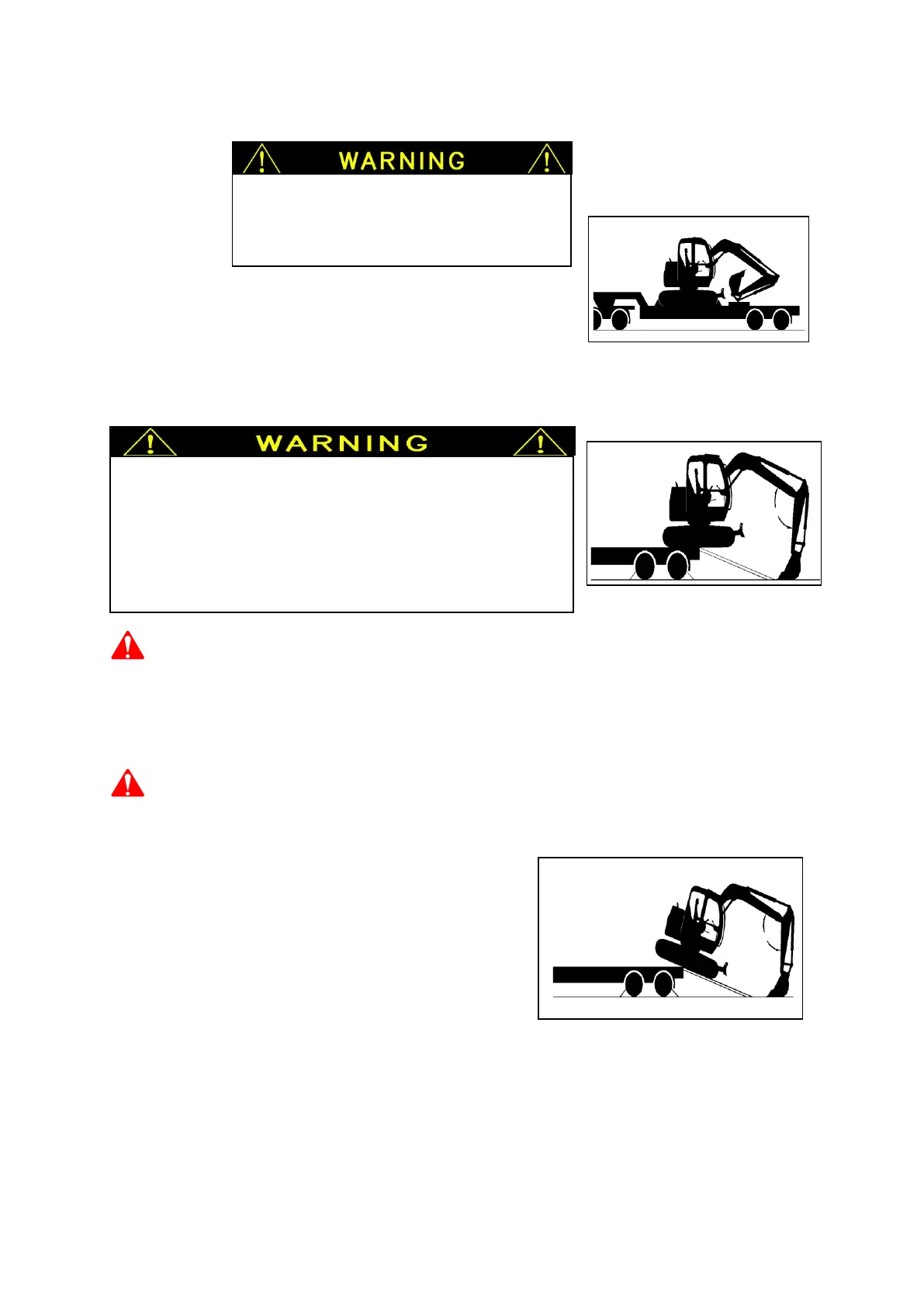 A. When the machine travel from trailer bed to slope as illustrated, place the bucket to the ground as figure,