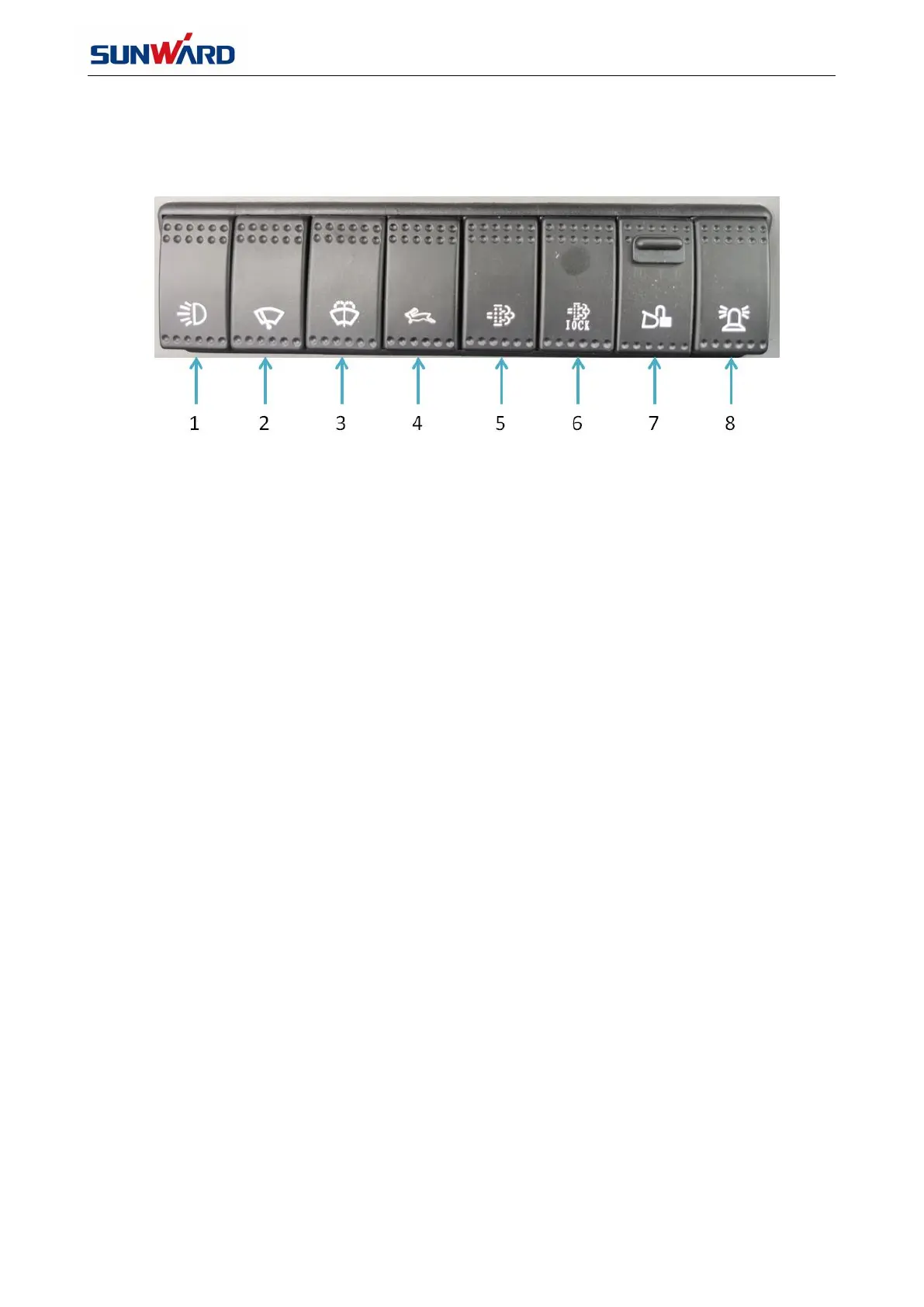 This switch controls the wiper. When pressing down this switch, wiper begins to work, the icon will be on for
