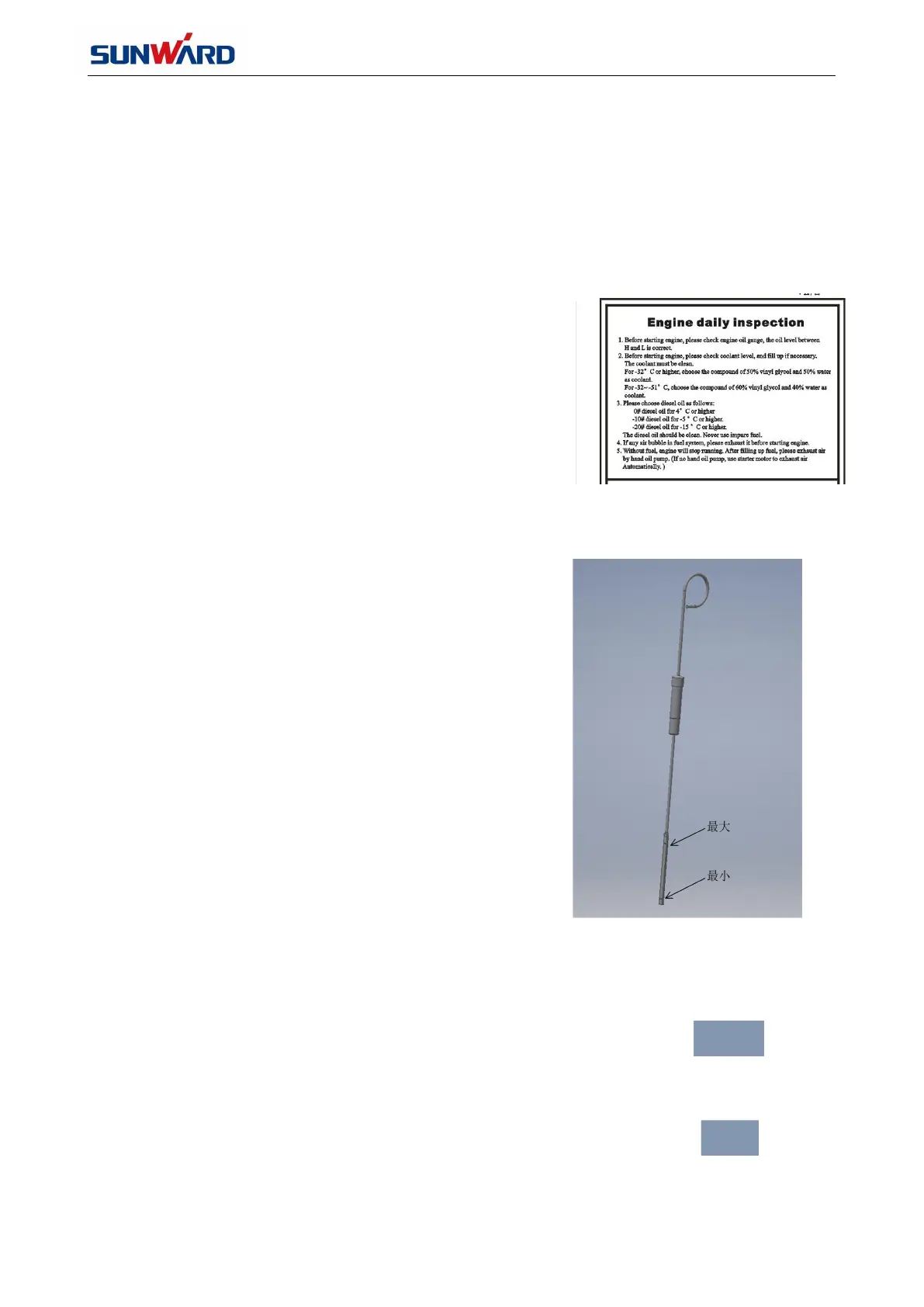 level (stop engine, the engine oil will return to the tank bottom 15
