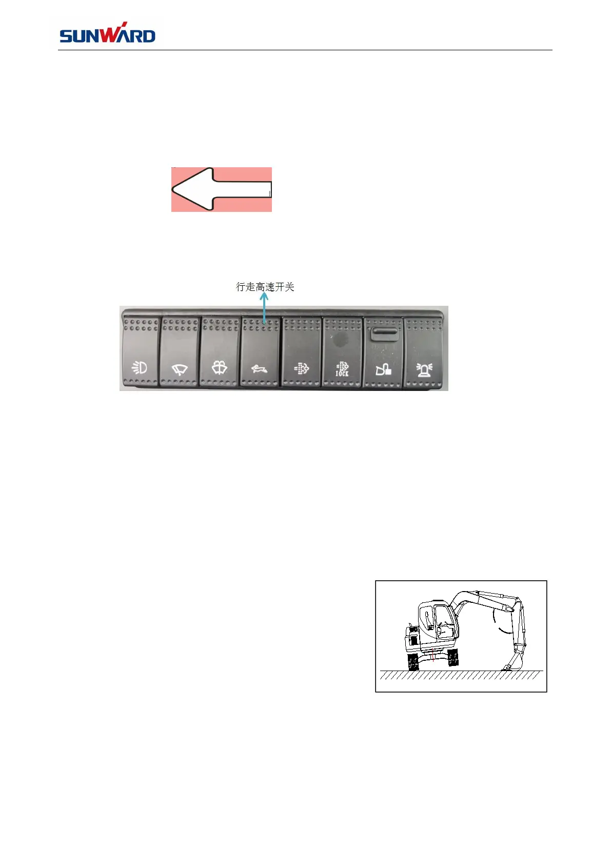During the machine traveling, press high/low speed switch on control panel to shift the travel motor speed