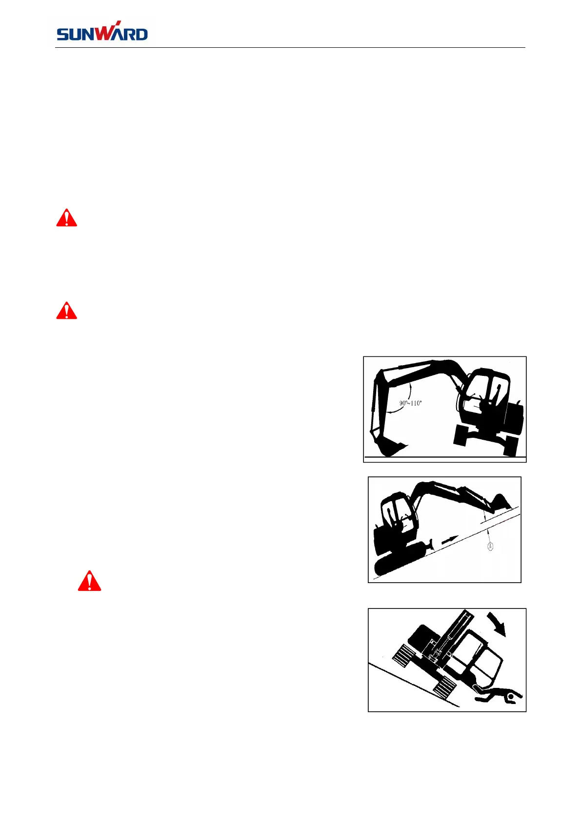 ground freeze together. If freeze does happen, please lift crawler by boom, move excavator carefully to