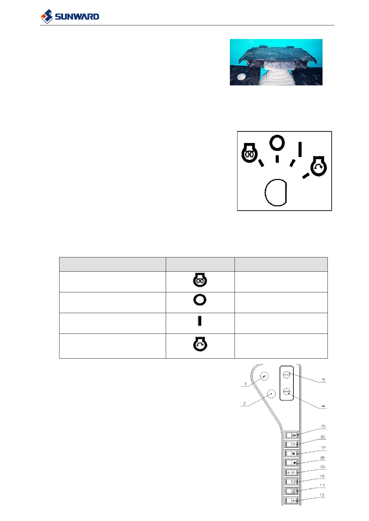 support. This rotary switch has four fixed positions. The marks and functions for the