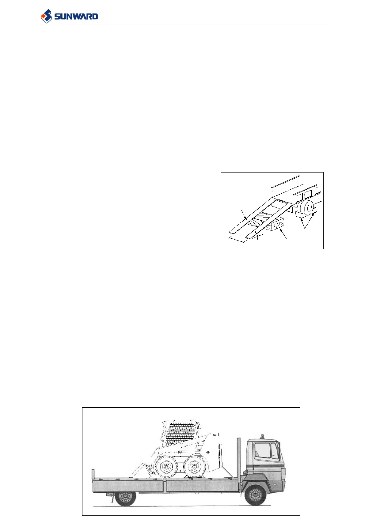 3) Move the machine on the ramps. Keep the empty bucket backwards and the