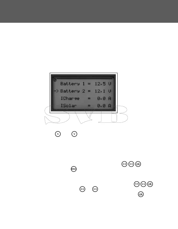 The arrow keys and call up the individual display screens.