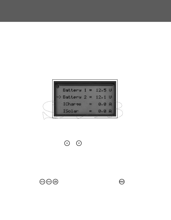 tensions, les courants, les états de charge sur le grand écran éclairé et