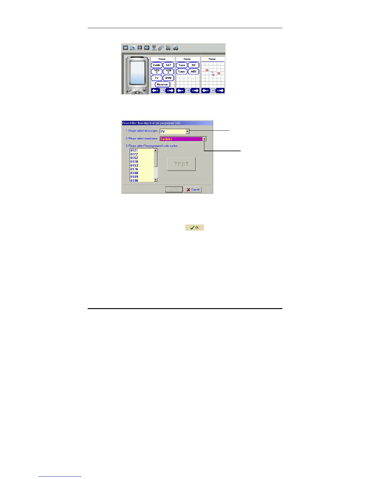 5. The pre-programmed code entry window will appear.