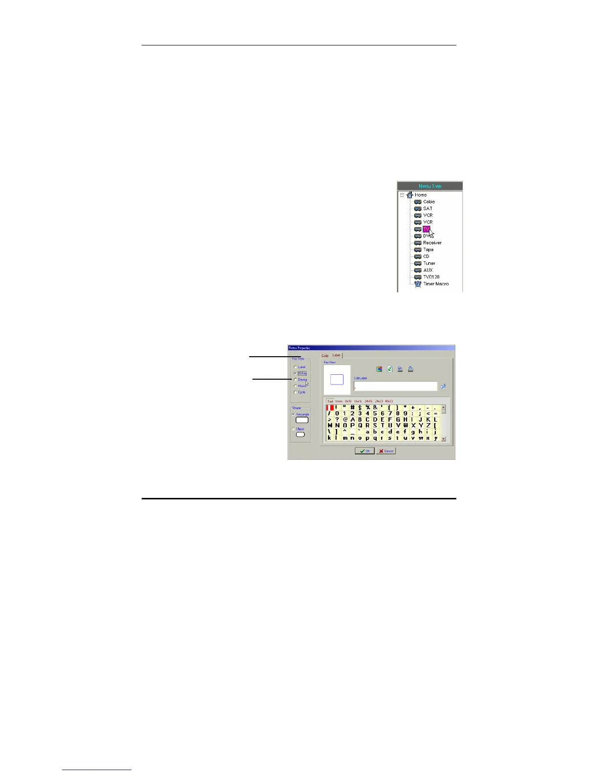 6. Click the Device radio button to define the new key as a