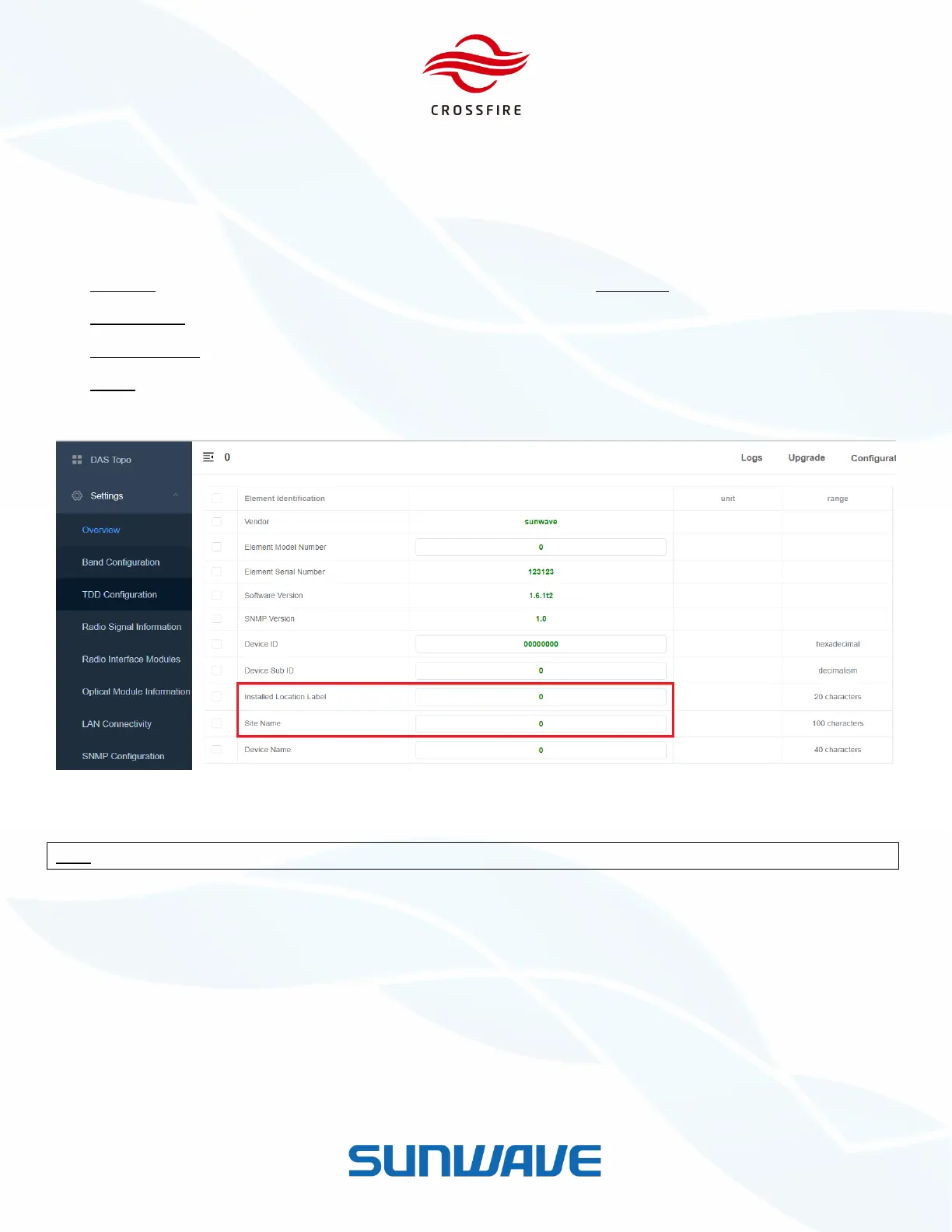 Note: The Installed Location and Site Name labels cannot contain the following special characters: %, &, ‘, “, \
