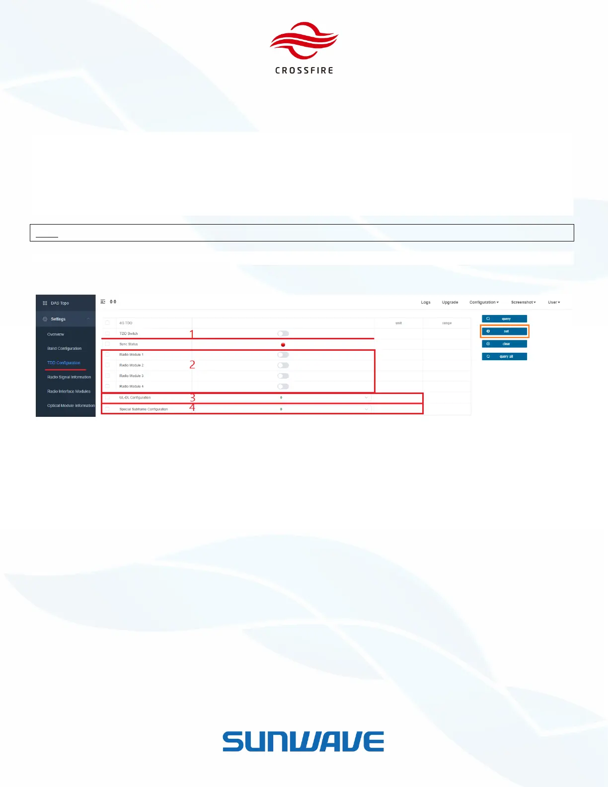 Note: CrossFire supports the same TDD configuration for enabled modules in one system.