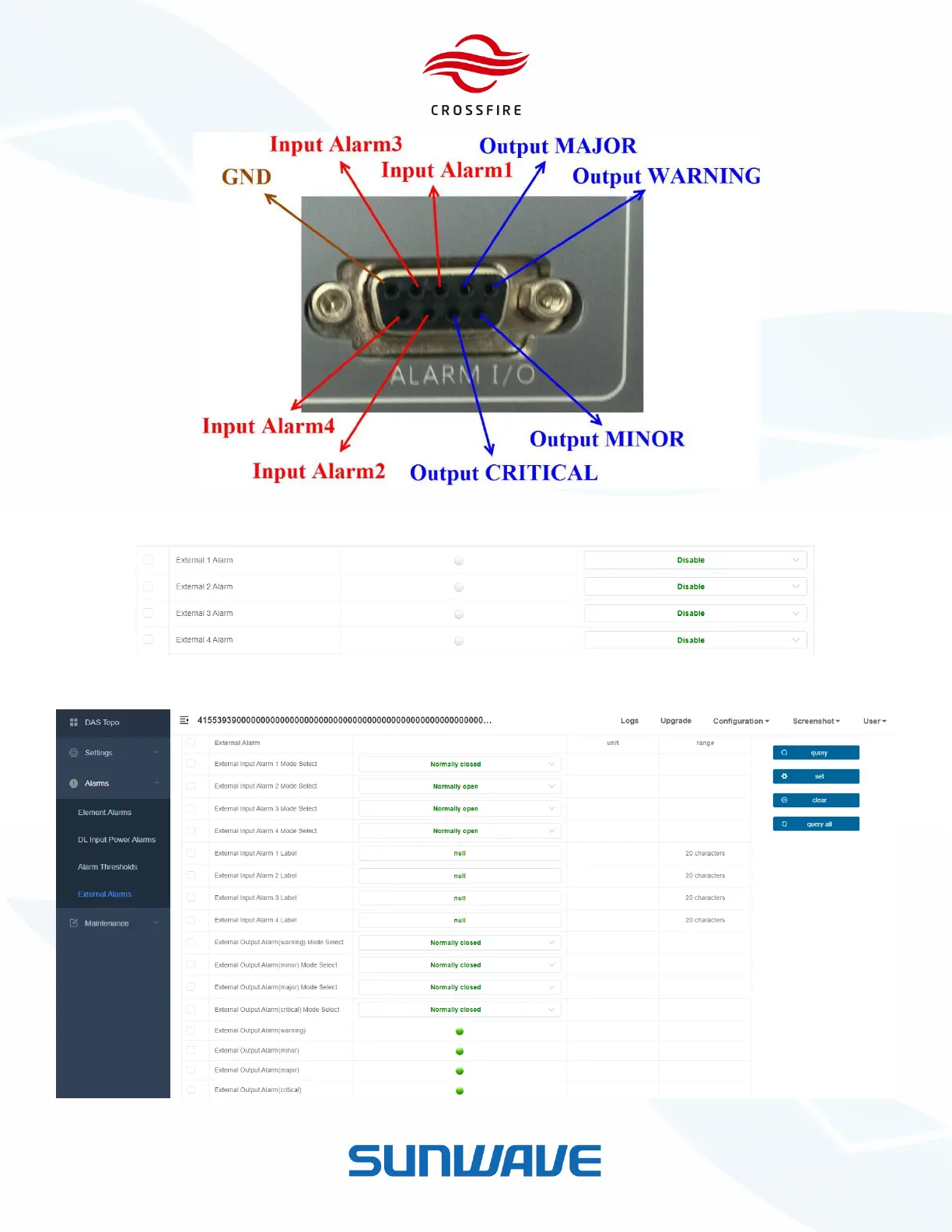 Sunwave CrossFire M2 - External Alarm Details by Unit; External Alarms for A2 Unit