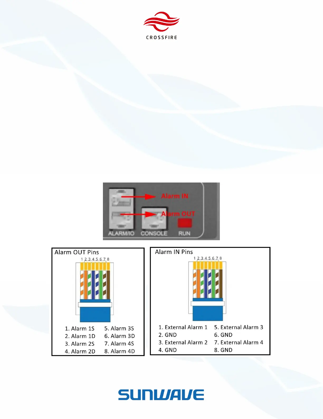The external alarms are input to a RJ45 interface located on the front panel of E2-O. See Figure 35 for the detailed PIN