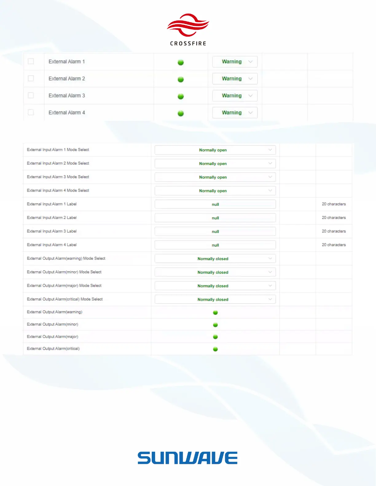 M2RU (2 inputs and 2 outputs). See Figure 38 for detailed PIN configuration of this connector. The external alarms can
