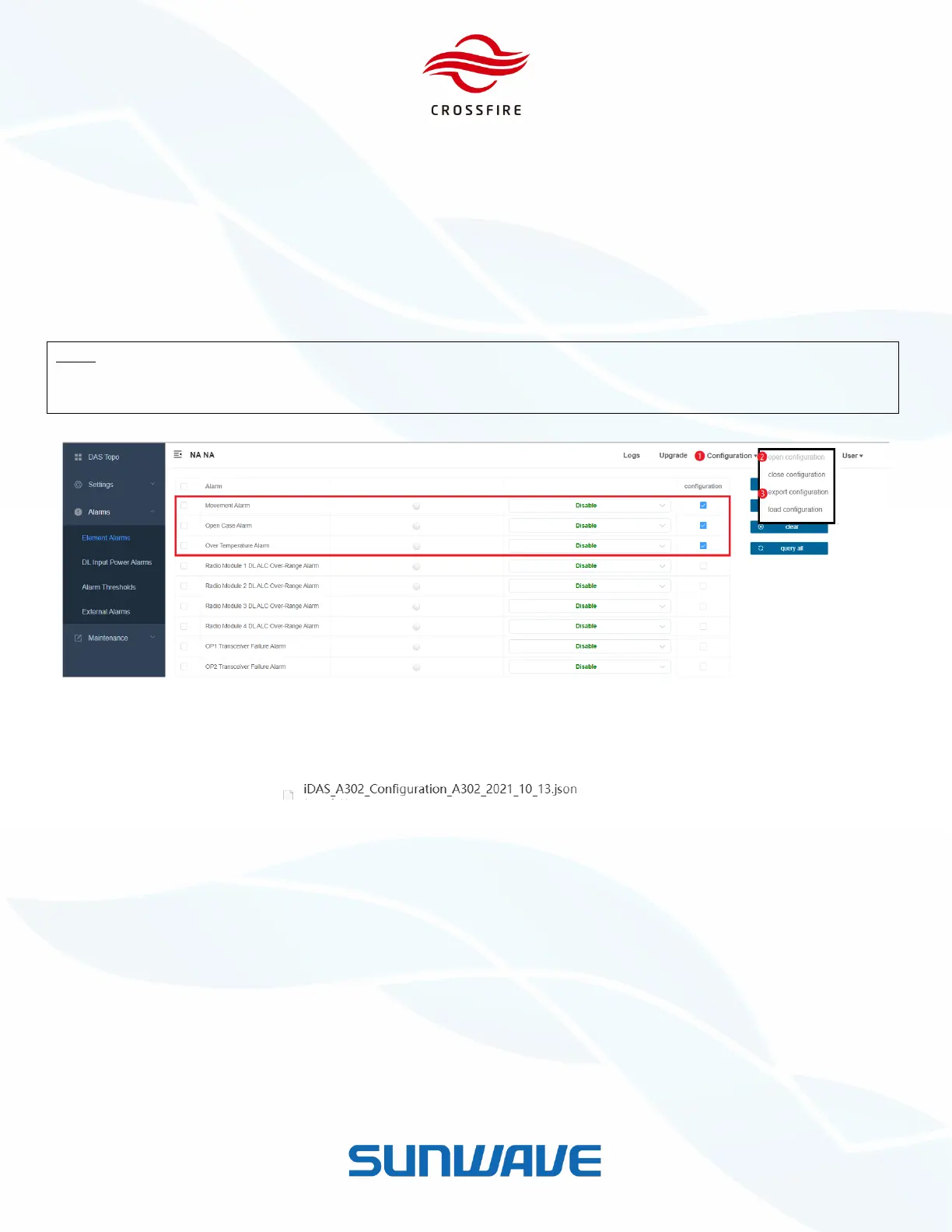 4. Click export Configuration button to download all saved configuration in a .json file