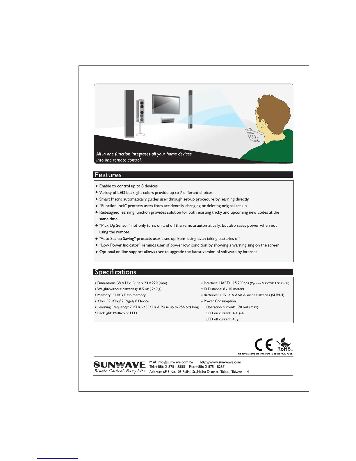 Sunwave SRC-3200 - Product Features; Multi-Device Control; Smart Macro Learning; Learning Functionality