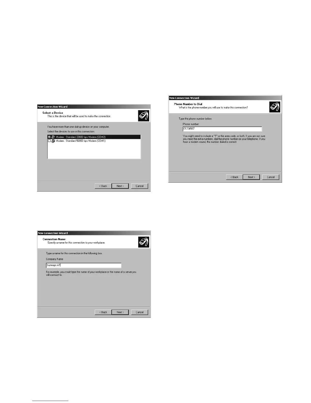 4. A list of the installed modems appears.