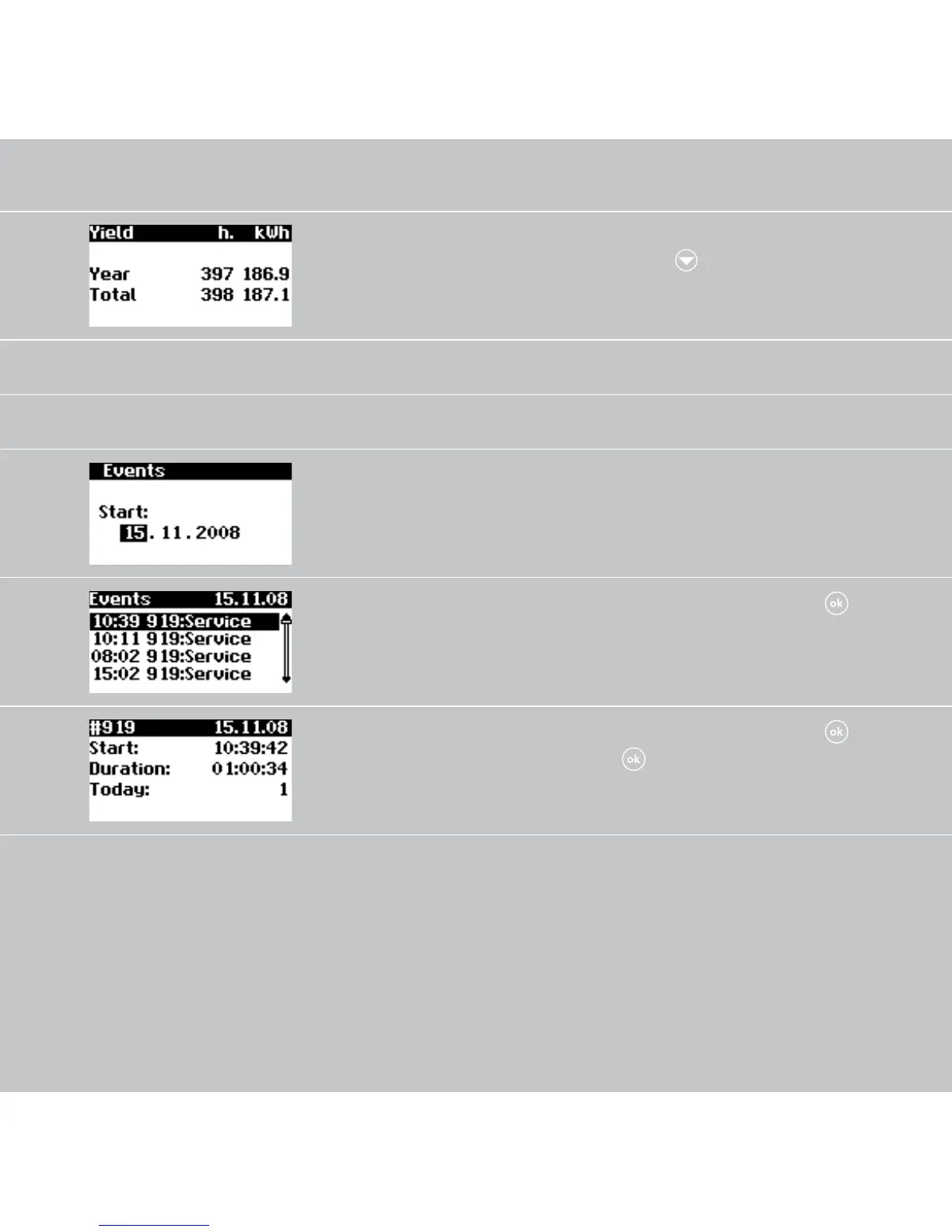 Display event list Solar inverter – Events –
