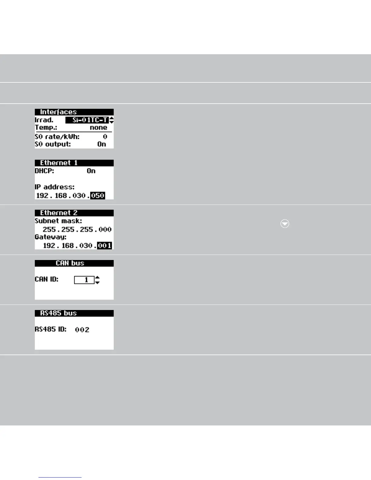 Settings – Network (only possible with customer password)