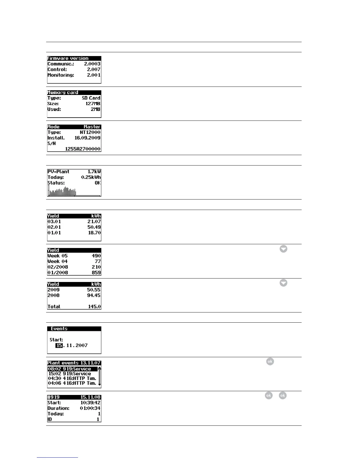 Events – Solar system (display only main unit)
