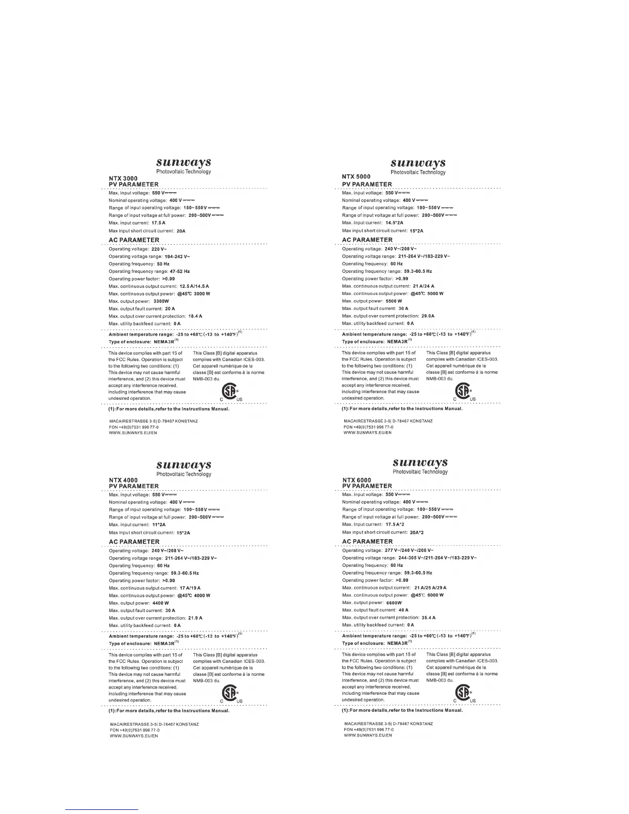Sunways NTX3000 - Product Label