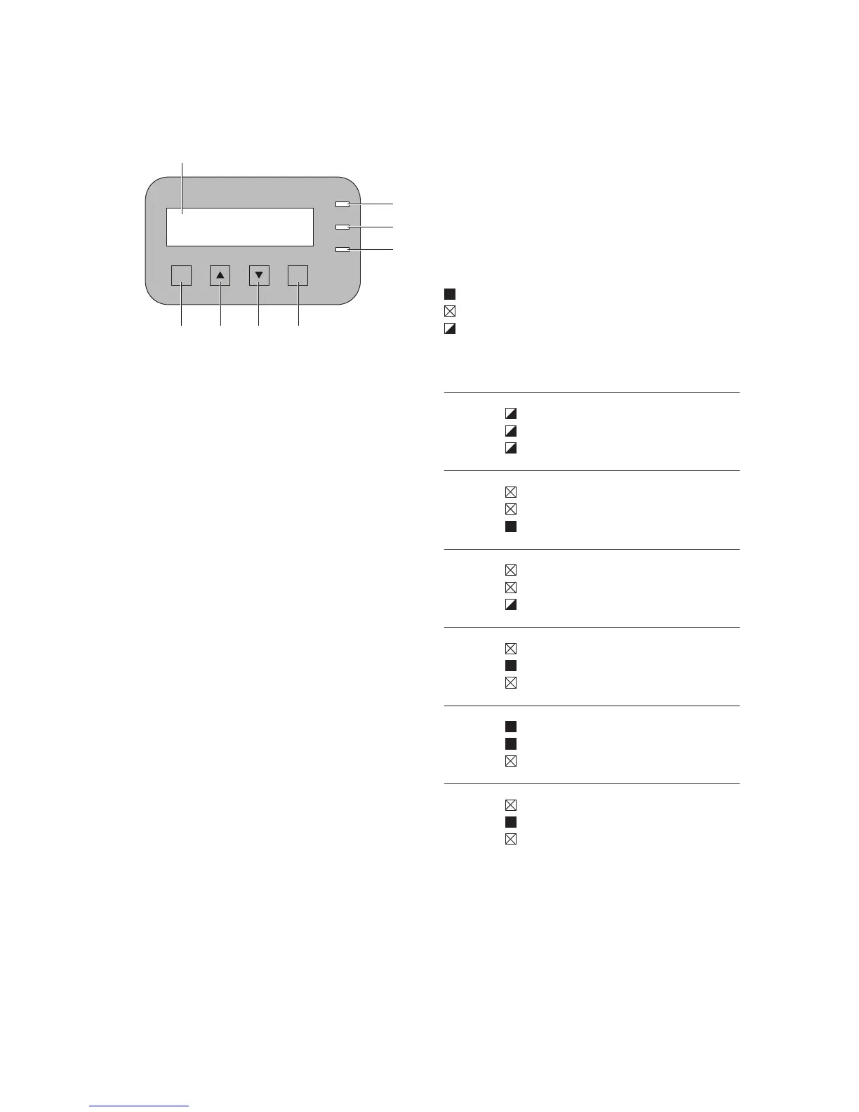 LED indicator combinations and their meaning are