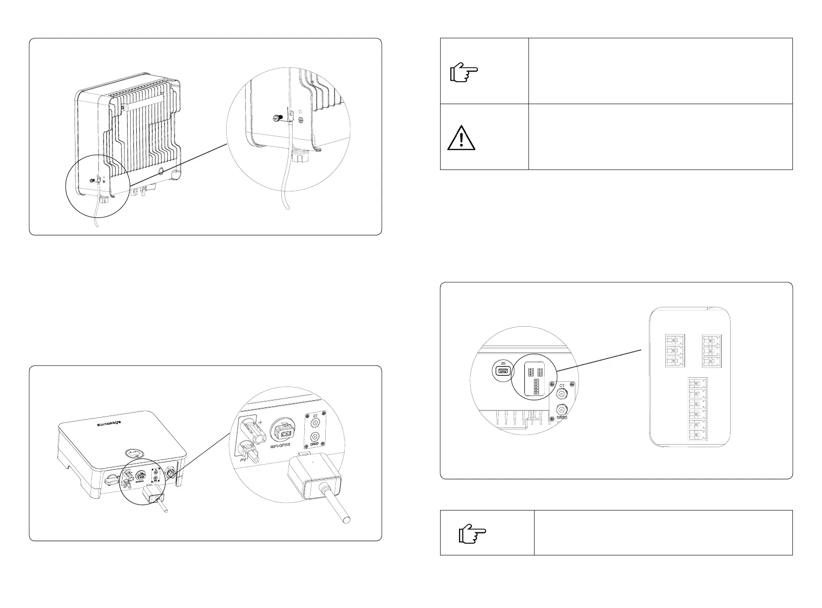 include CT port, RS485 port (used for Datalogger connection), and DRED port, as shown in