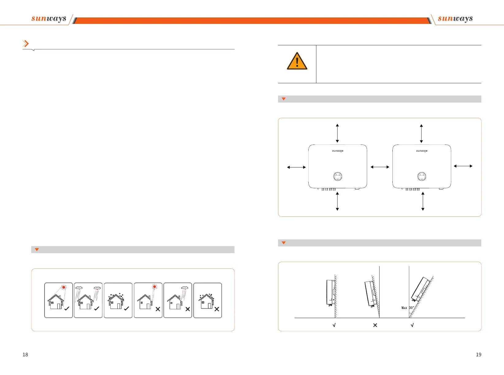 ① The wall on which the inverters mounted must be able to withstand the weight of the
