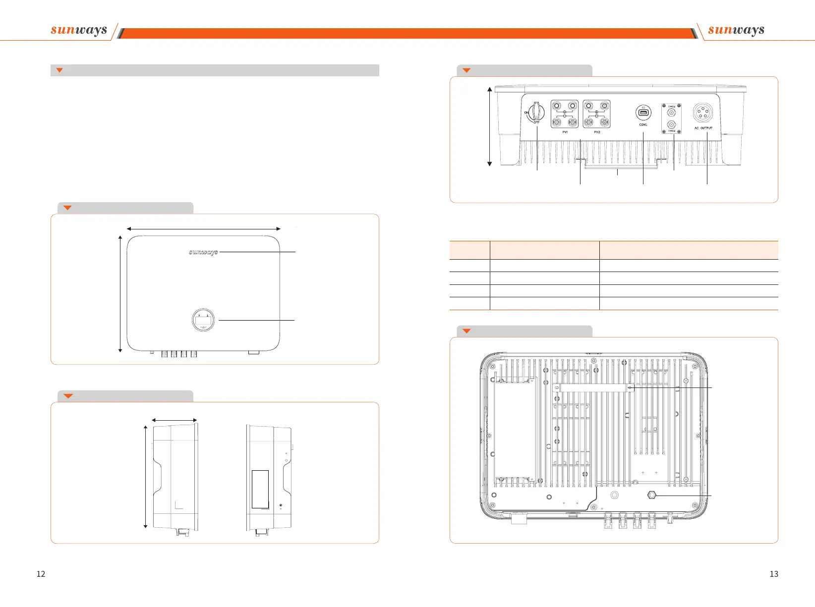 Wiring terminals are at the bottom of the inverter, as shown in the table below.