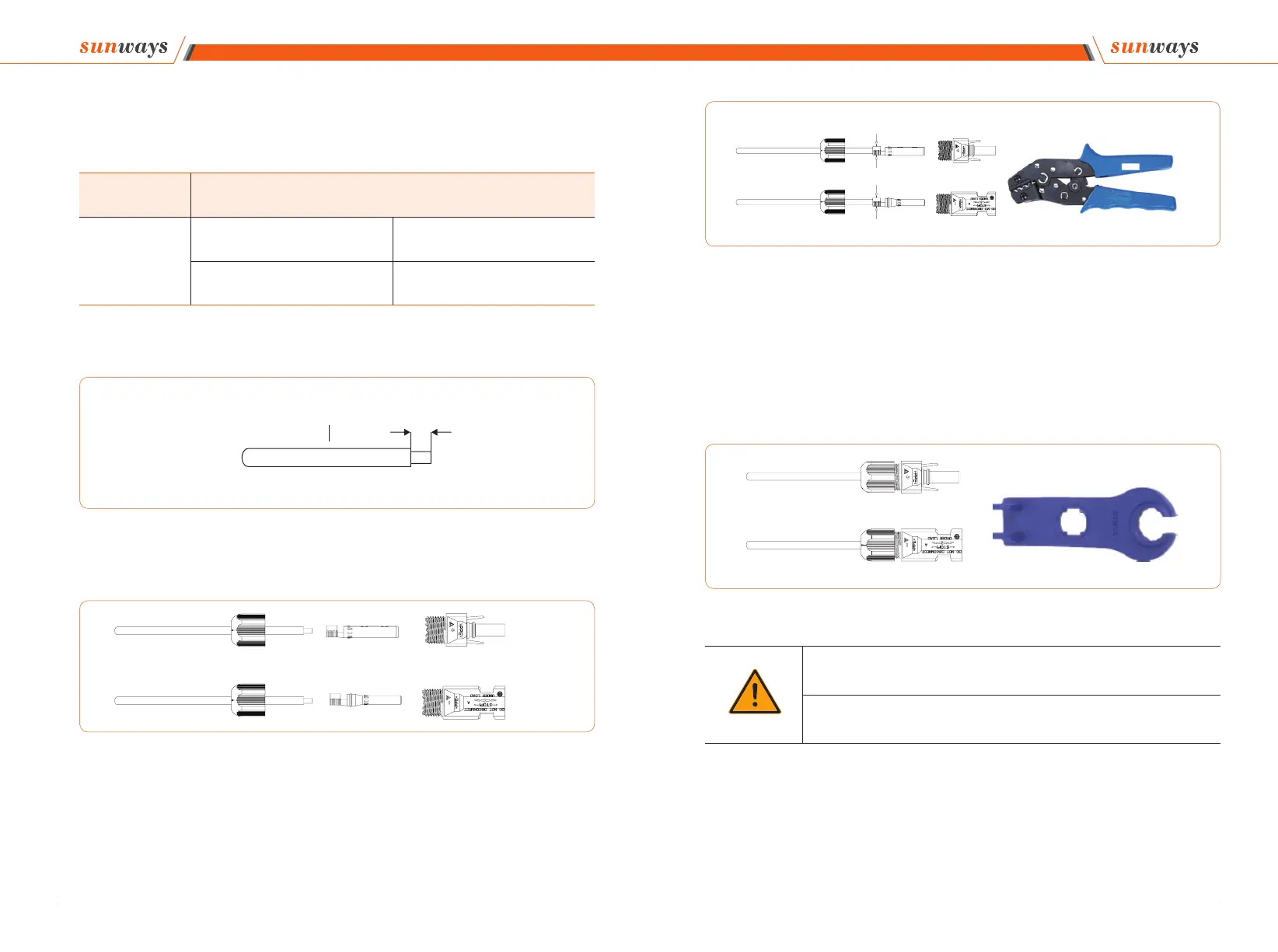 ① Before assembling the DC connector, make sure that the cable polarity is correct.