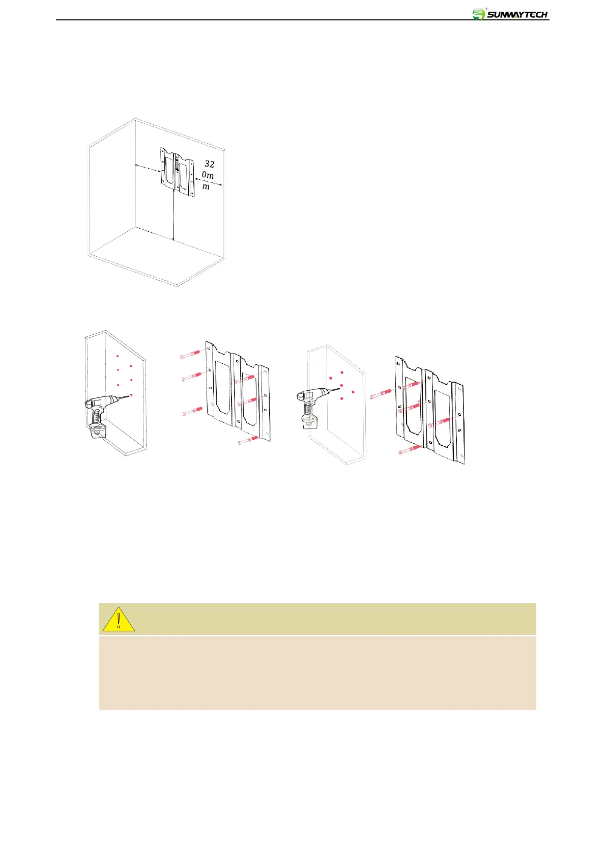 Keep a minimal distance of 320mm between wall and bracket;