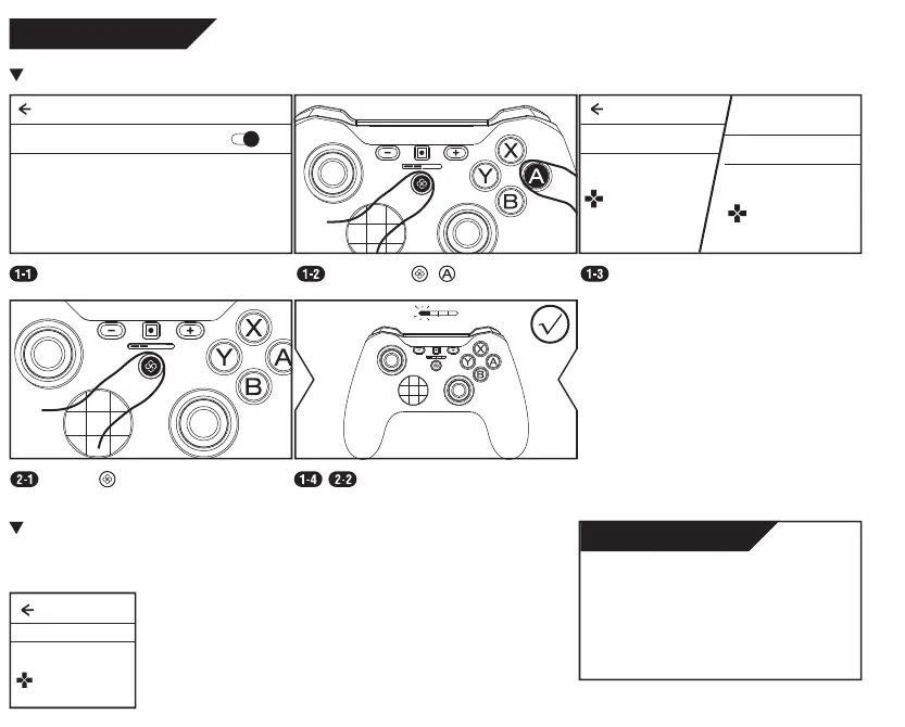 Turn on Bluetooth, click “Pair new device”. Press and hold + until lights run. Find the device “Gamepad” to pair.