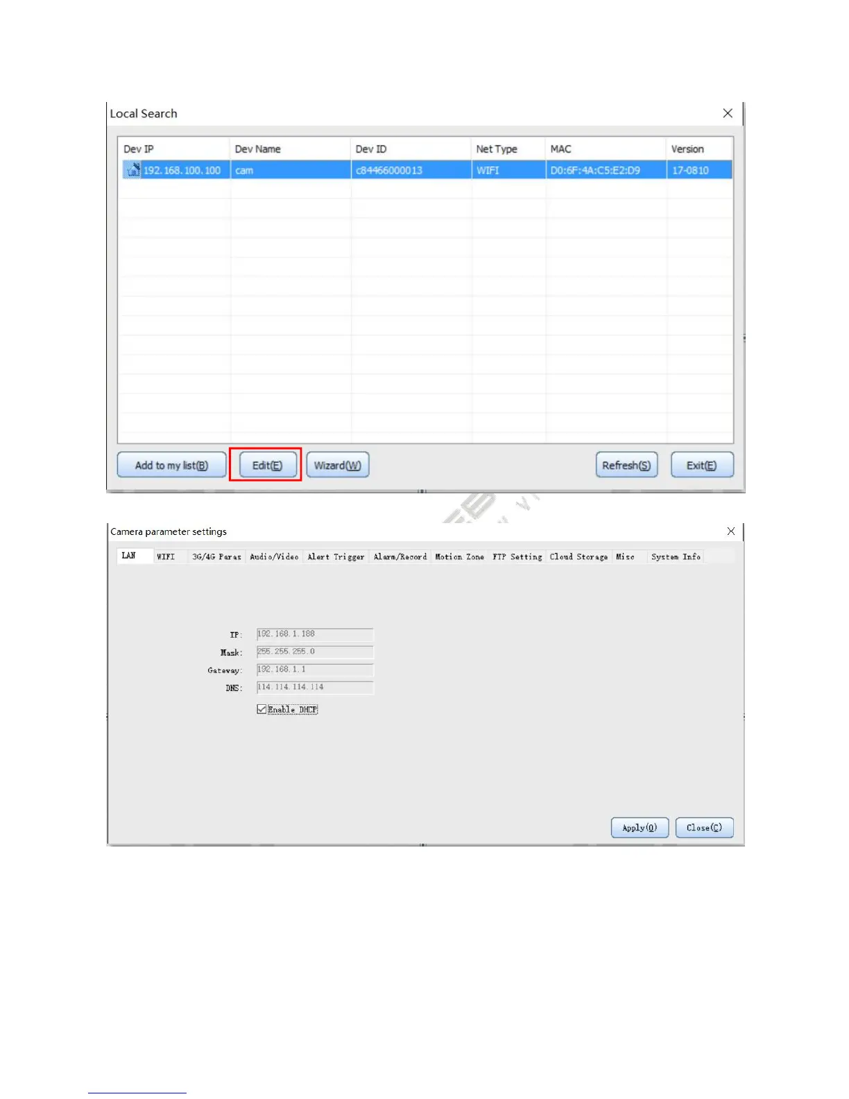Note: The parameter settings of Wi-Fi version